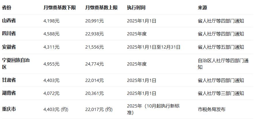 举例:如果你在山西省选择最低档(4198元)缴费,那么每月需缴 4198 × 20% = 839.6元。